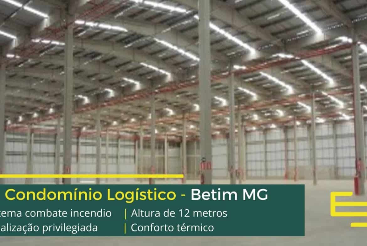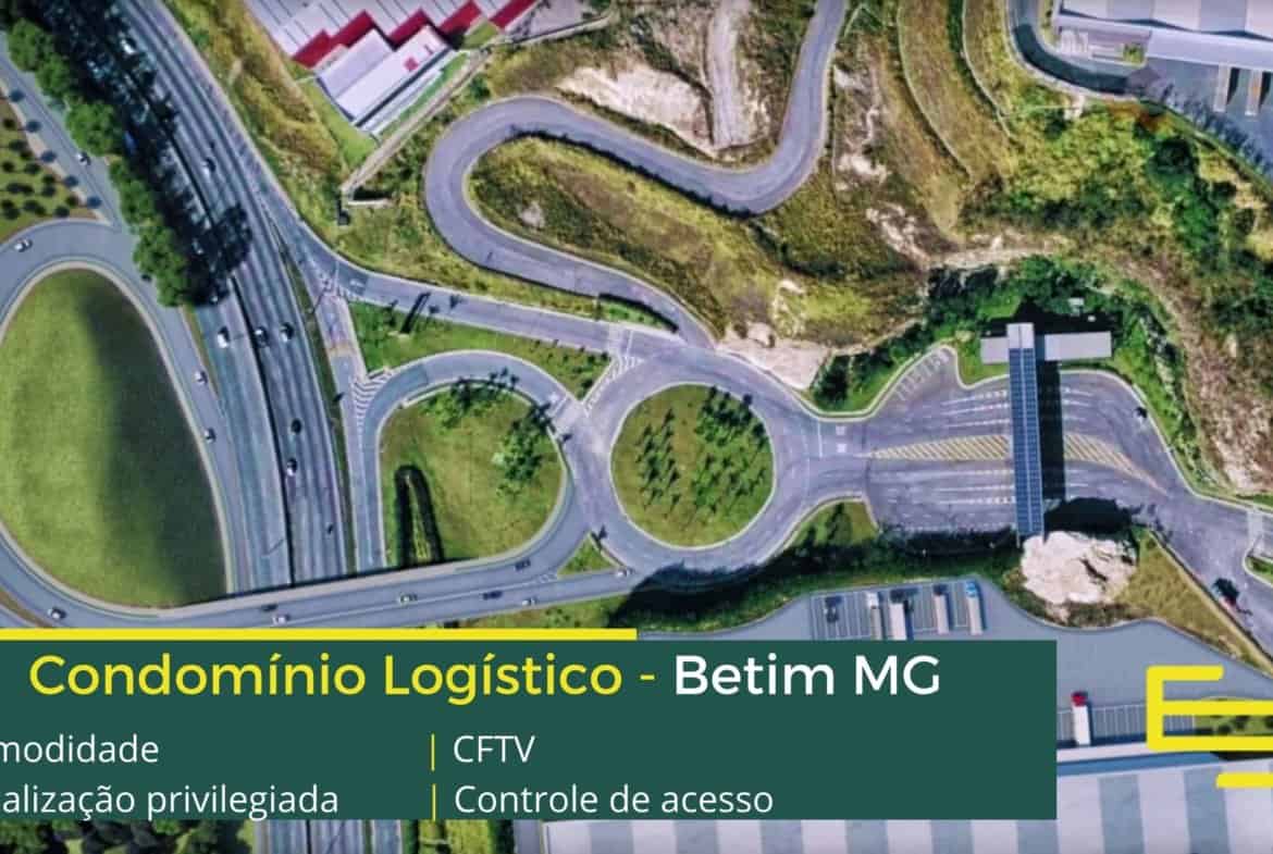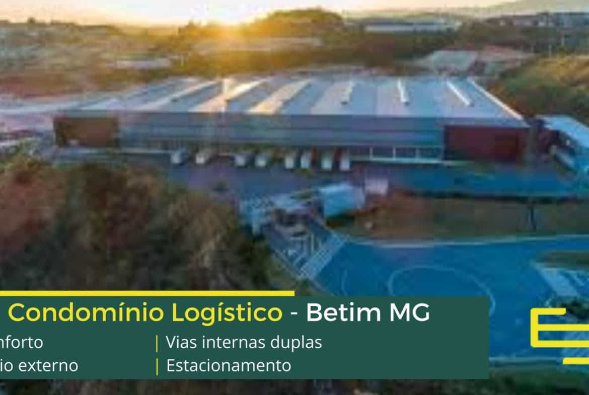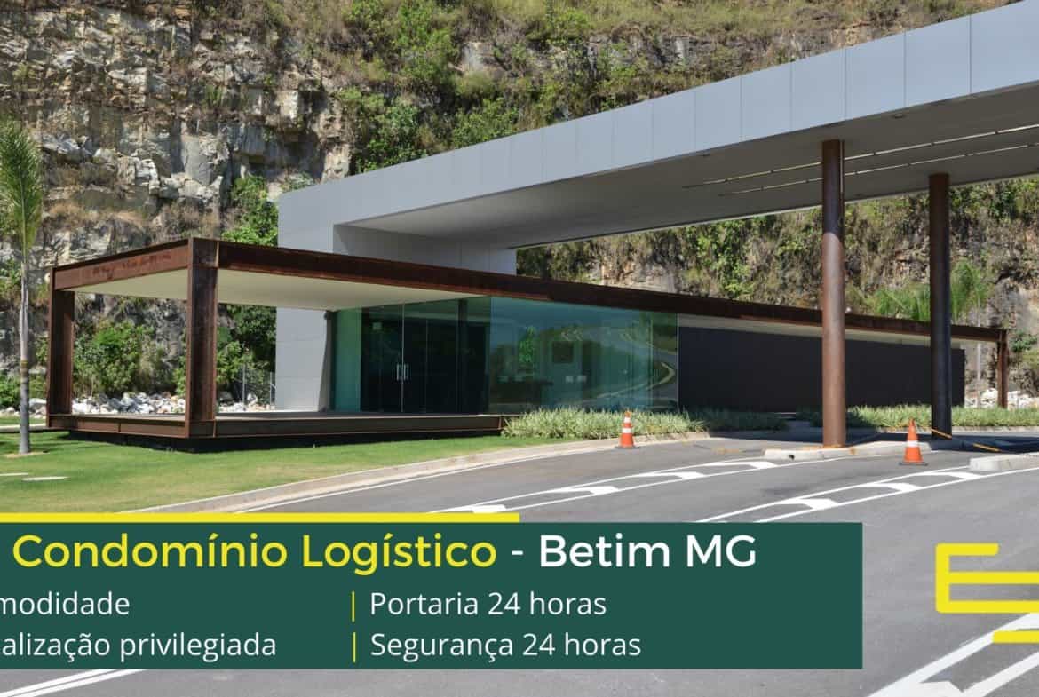 Aluguel de galpões logísticos em Betim MG, com módulos de 1.7 a 40 mil m2, pé direito de 10 a 15m2 e além disso, piso que resiste até 8t/m2., tudo isto em um moderno condomínio com controle de acesso na portaria e que funciona 24 horas dia.