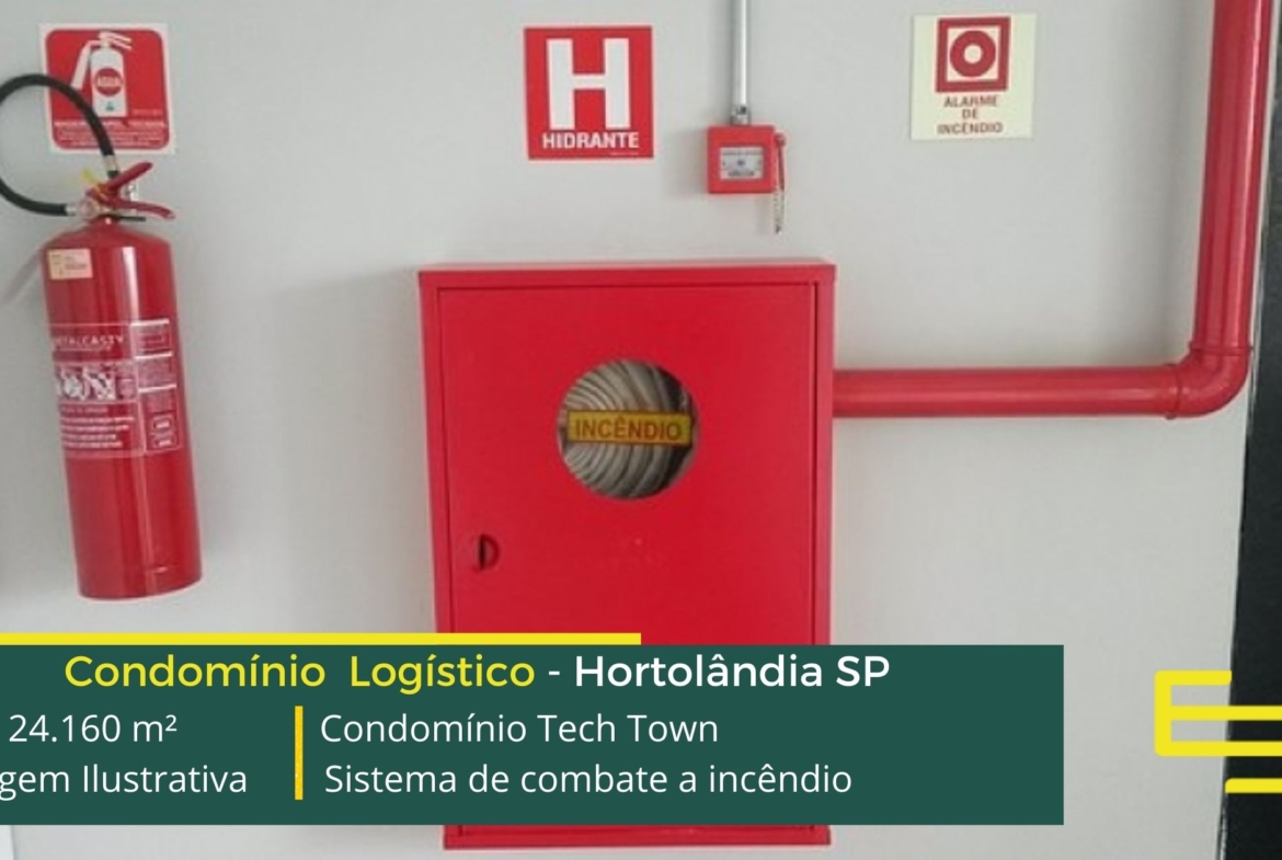 Locação de galpão em condomínio logístico em Hortolândia SP que possui controle de acesso, portaria 24 horas e além disso, galpões modulares com sistema de combate a incêndio, com sprinklers.