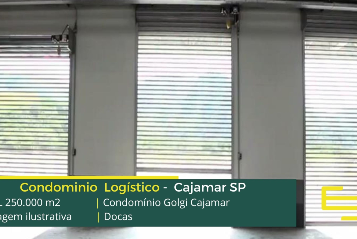 Locação de galpão logístico em Cajamar SP, em condomínio fechado que conta com Infra estrutura completa de segurança 24 horas e além disso, galpões com alto padrão de construção eficiência de armazenagem de 90% sobre a área locável e docas com niveladoras.