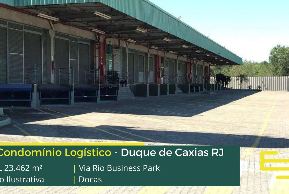 Aluguel de galpões logísticos em Duque de Caxias RJ, em condomínio com fácil acesso as cidades de Nilópolis, Rio de Janeiro e aos bairros da Pavuna e Irajá, e que sobretudo possui docas para carga e descarga.