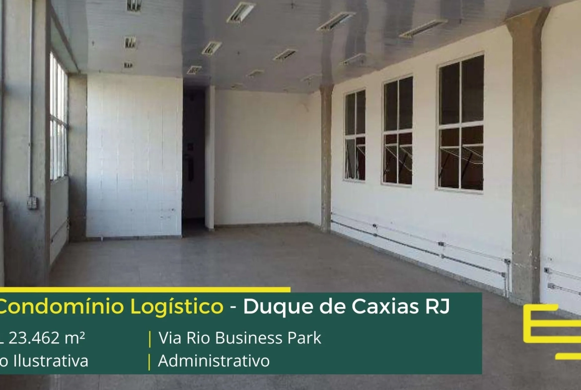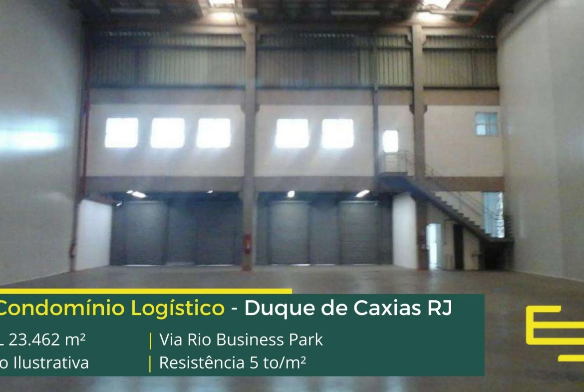 No condomínio Via Rio Business Park, é possível aluguel de galpões para logística em Duque de Caxias e além disso, distribuição e que além disso, contam com: