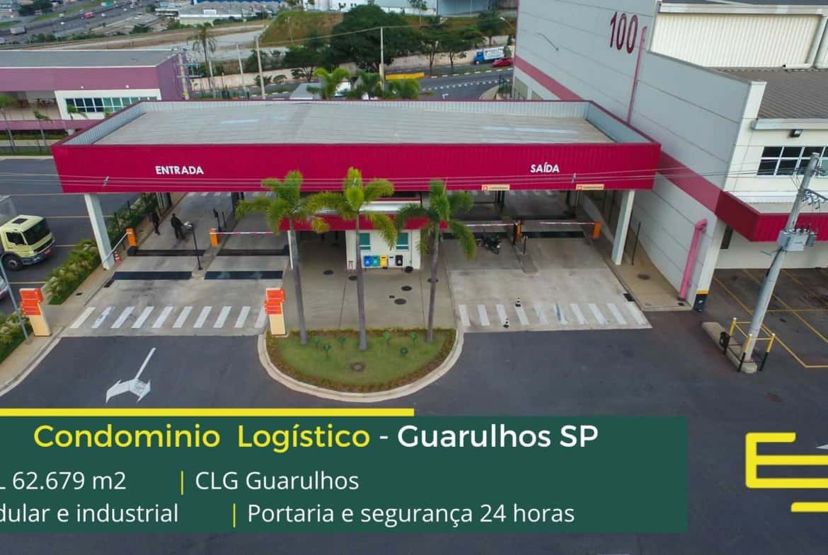 Aluguel de galpões em Guarulhos SP, em condomínio logístico, com localização privilegiada e uma estrutura completa de segurança e de serviços, e além disso, o empreendimento possui 03 naves e 40 módulos e sua infraestrutura ainda conta com iluminação zenital e renovadores de ar, portaria blindada, área de apoio ao motorista, ambulatório e restaurante.